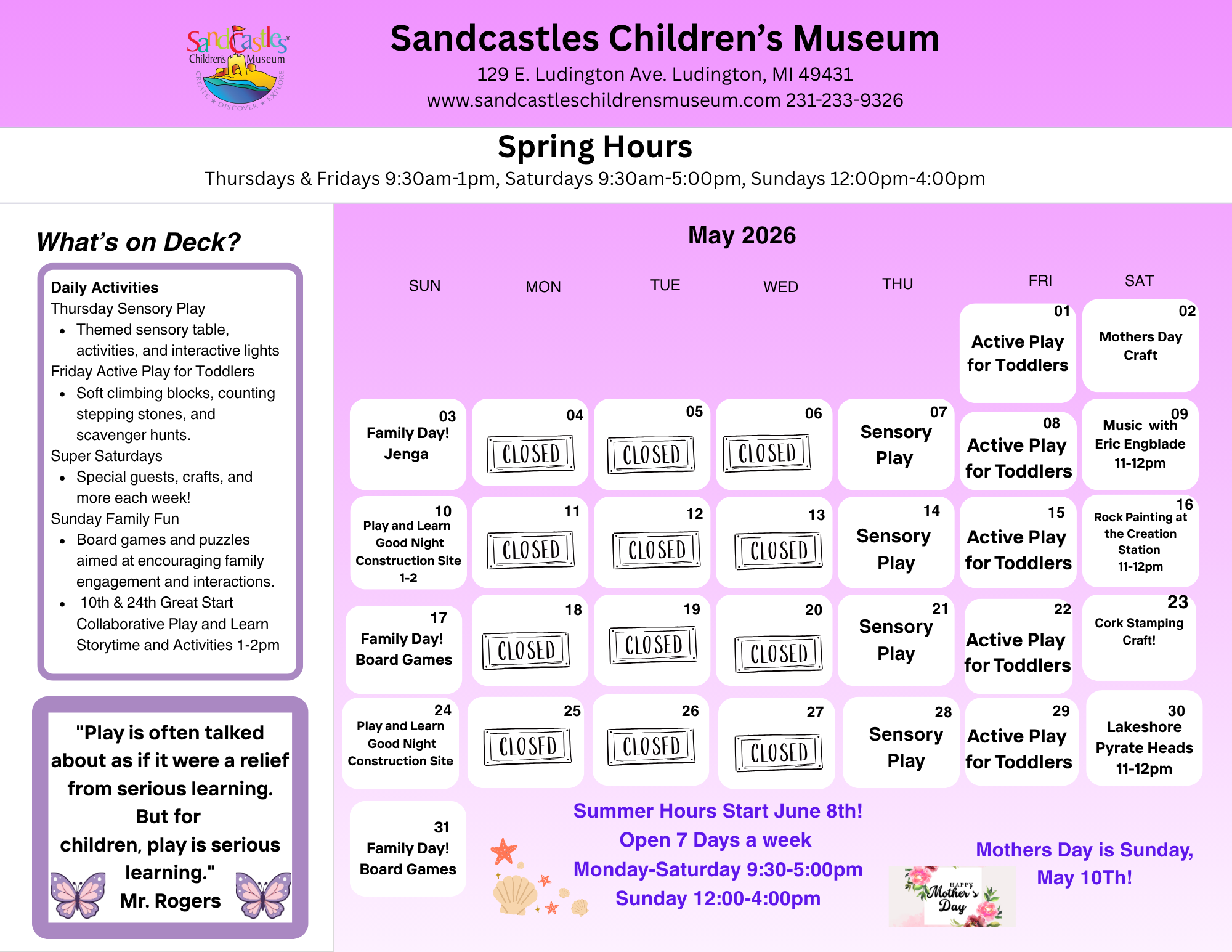 Current Programs ScheduleCheck this page seasonally for updates. See Google Calendar See Google Calendar